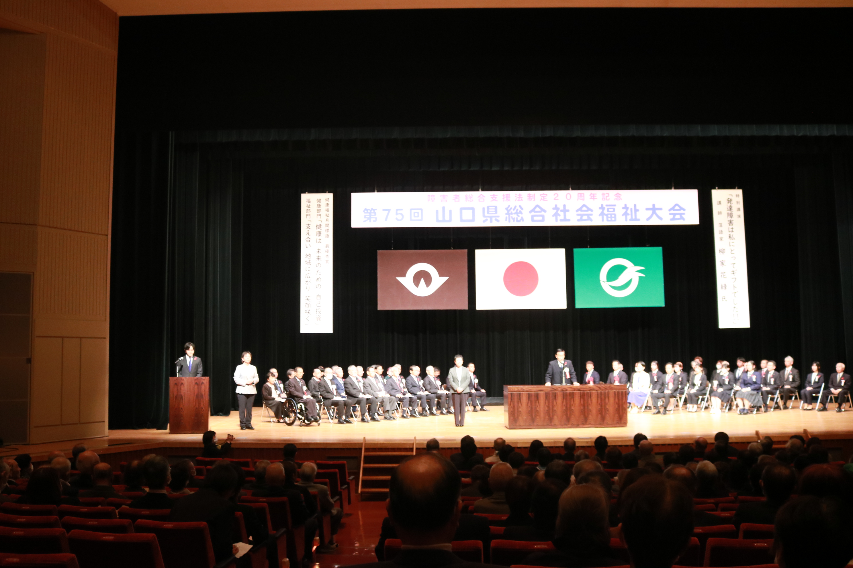 大会は県内の社会福祉施設関係者が一堂に会し、社会福祉の向上に尽力された方々を表彰し、課題や方向性を共有し、山口県の社会福祉の一層の発展に資することを目的として開催。